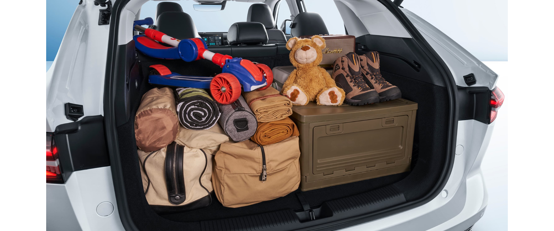 Emellett a csomagtér 507 literes befogadóképességű, minden igényt kielégítő, rakodóhálóval felszerelt rakteret kínál, amely az ülések lehajtásával 1484 literre bővíthető. A kisebb tárgyak is remekül elhelyezhetők, az utastérben 19 tárolórekesz található, ebből 8 a hátsó utasok számára.